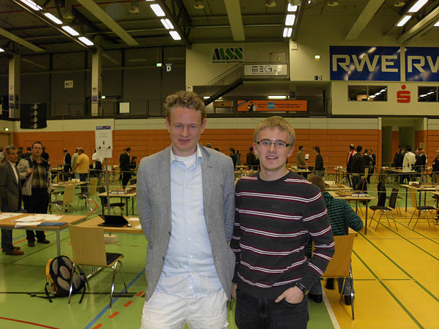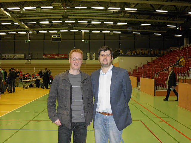 Ich war so aufgeregt, dass ich es schaffte, Levon auf den Fuß zu treten, als wir für das Foto ein Schritt aufeinander zu machten. Smile Es beeinträchtigte ihn aber nicht weiter, da er seine Partie gegen Laurent Fressinet (Werder Bremen) gewinnen konnte.